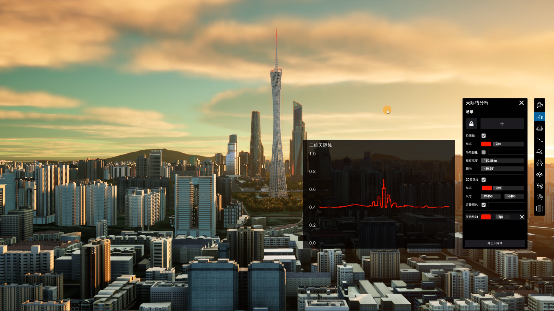 可以将传统的GIS分析功能集成在平台中,如城市天际线分析、可视域分析、开敞度分析、通视分析、淹没分析、坡度分析、等高线分析等,在平台中显示和分析地理现象的分布、关系和变化趋势,从而揭示地理数据之间的空间关联性,帮助用户更好地理解和解决问题,协助决策的制定和规划的实施。